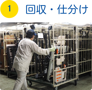 ![]() ご利用期間が終了した福祉用具を回収し種類ごとに分類します。 |