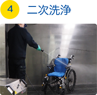 100℃の安定した高温水を適正適圧で連続噴射できるため、車椅子・ベッドのパーツの洗浄消毒や、エアーマット・歩行器・スロープなど、泥や汚れが付着したものでも、細かいところまで洗浄できます。 |