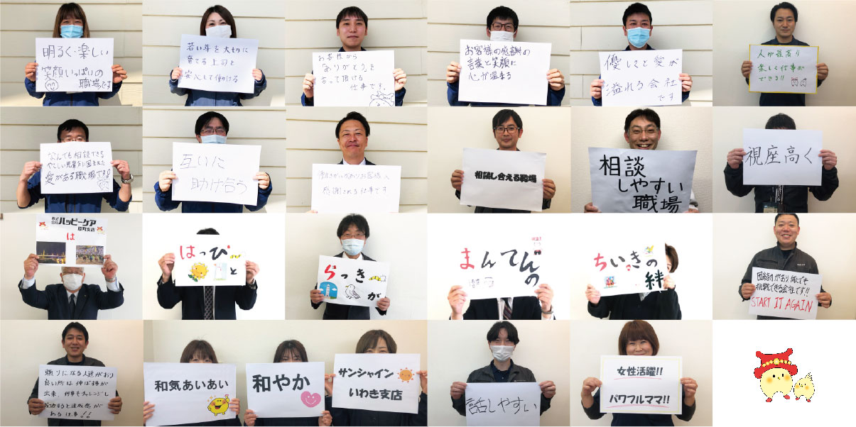 優しい方、コツコツタイプ、とにかく明るい方、そういった社員が男女問わずたくさん活躍している楽しい会社です。